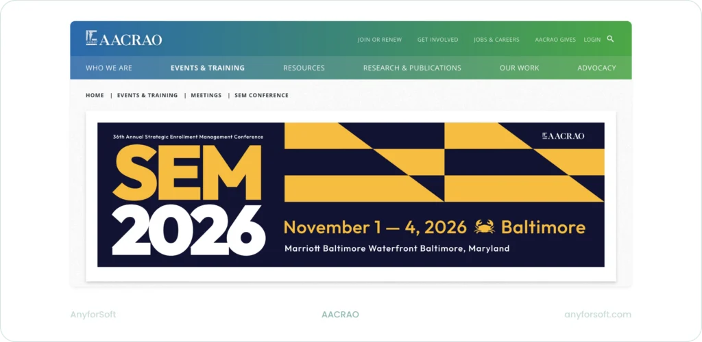 | AACRAO SEM Conference 2026 | Nov 1–4 | Enrollment-oriented | Baltimore, MD, USA | To be announced |