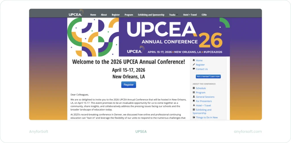 | UPCEA Annual Conference 2026 | Apr 15–17 | Mixed | New Orleans, LA, USA | ~$1,050–$1,800 |