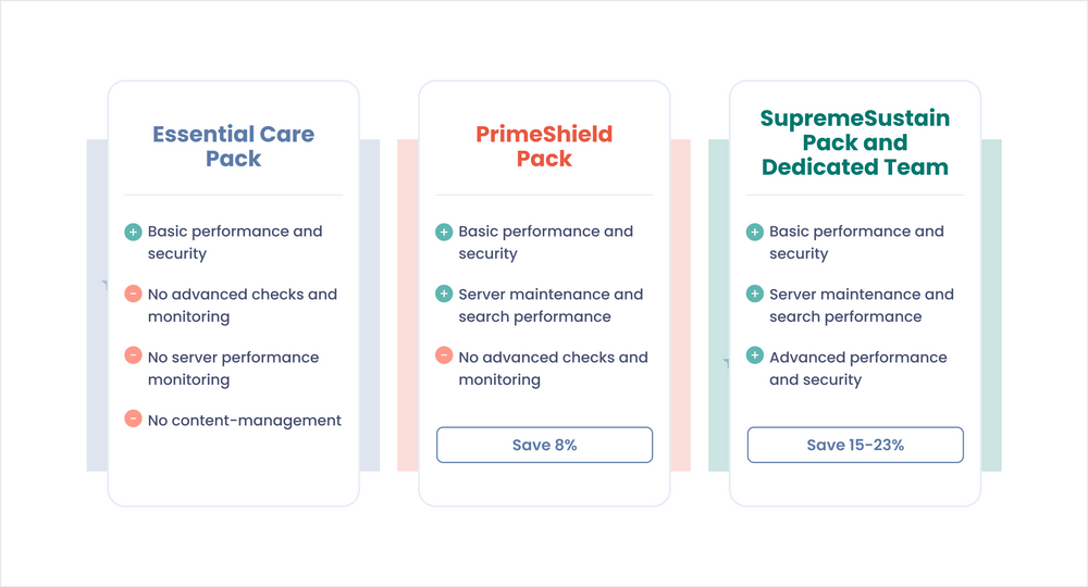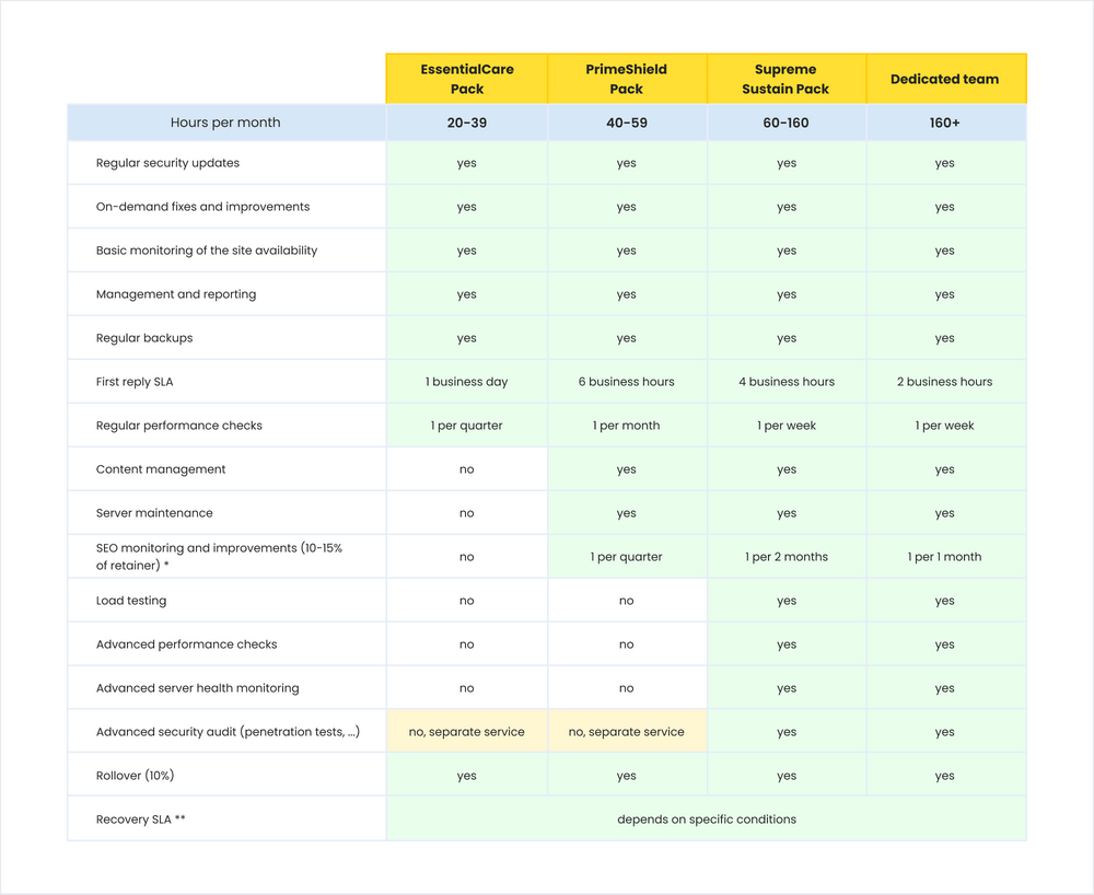 • Flexible engagement models. We offer four flexible maintenance packs to suit businesses of all sizes. You can spend allocated hours however you see fit.