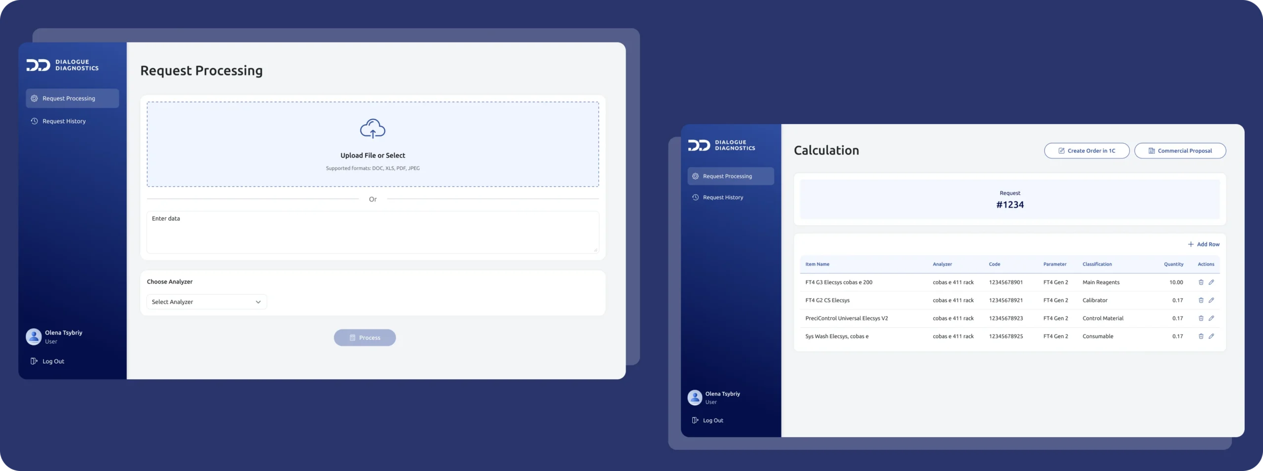 After validation, the finalized order is sent directly into 1C, fitting naturally into Dialogue Diagnostics’ operational process.