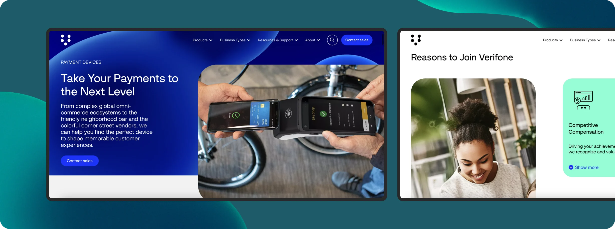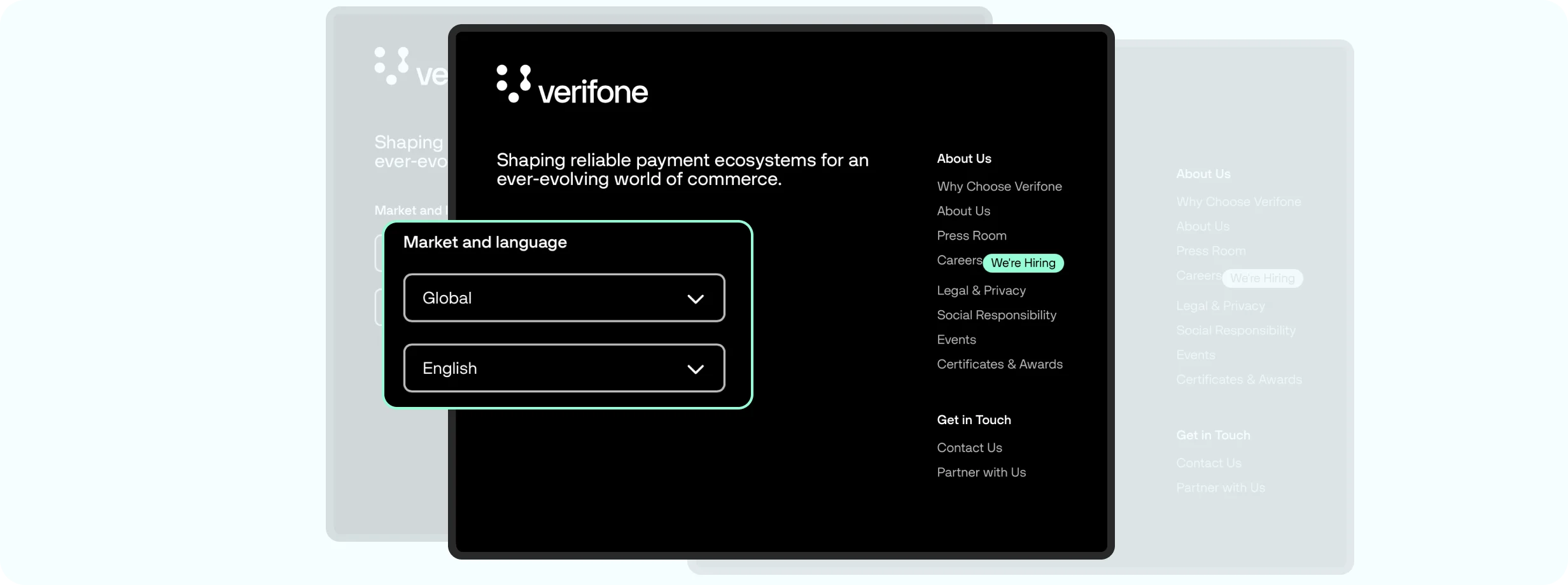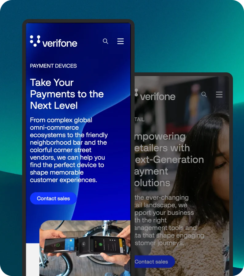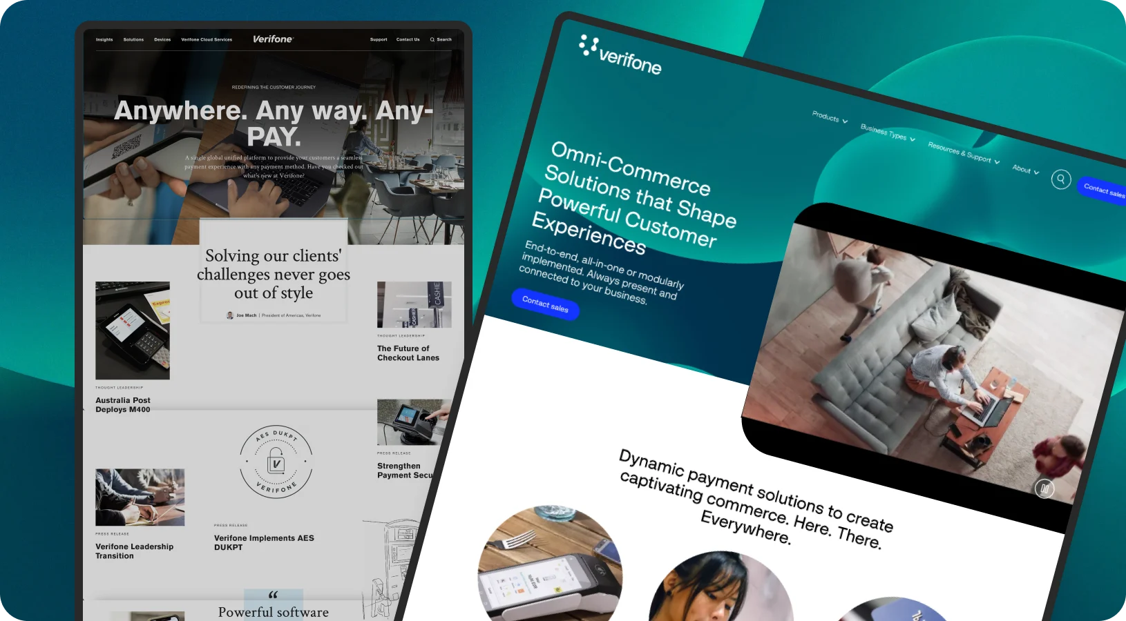 Verifone was in the process of rebranding. As a multinational enterprise, it had several websites on separate domains, each optimized for a specific location and language. That presented some problems: