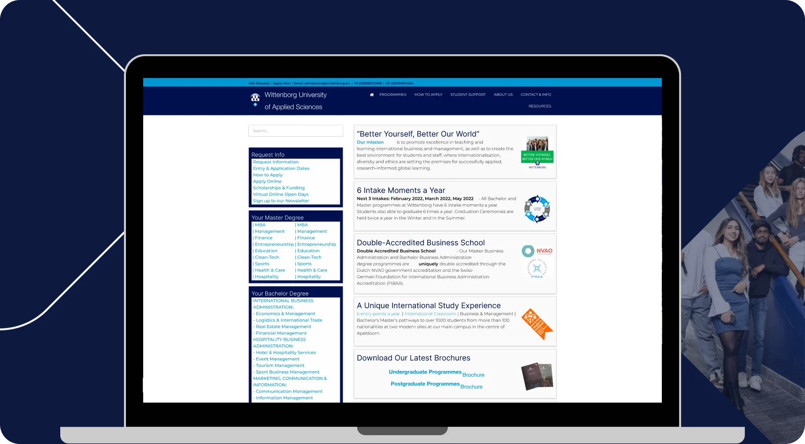 Wittenborg University of Applied Sciences (WUAS) is one of the most international universities in the Netherlands. When your audience is wide and diversified, and the number of learning programs is large, your website should keep up with the scale of tasks.
